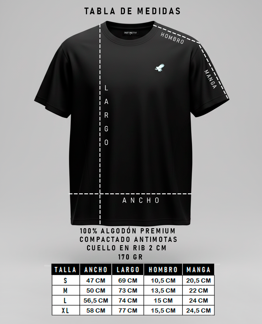 Camiseta 100% Algodón Premium de 170 gr. Tallaje normal y cuello en RIB.